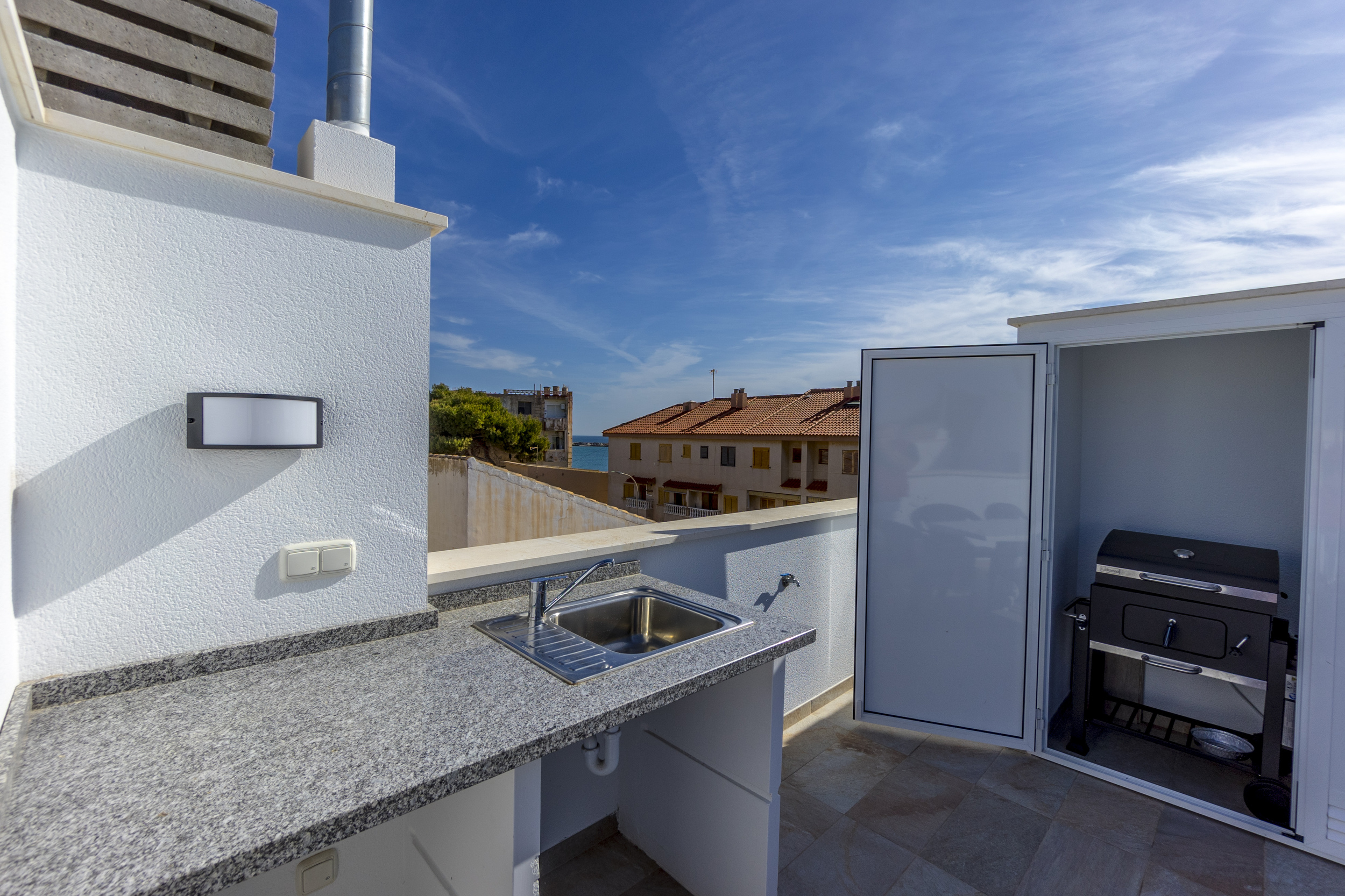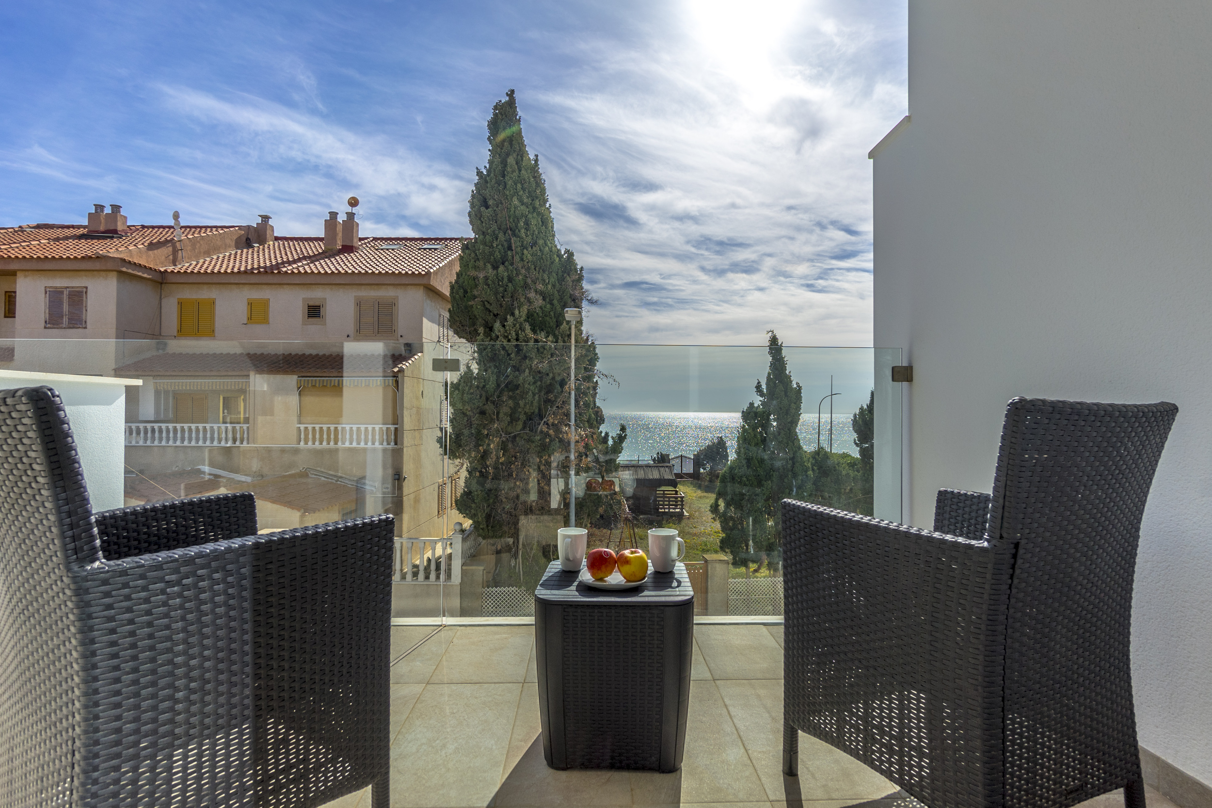Die Terrasse mit Meerblick lädt dazu ein, die Seele baumeln zu lassen. Hier genießen Sie die malerische Kulisse und pure Entspannung.