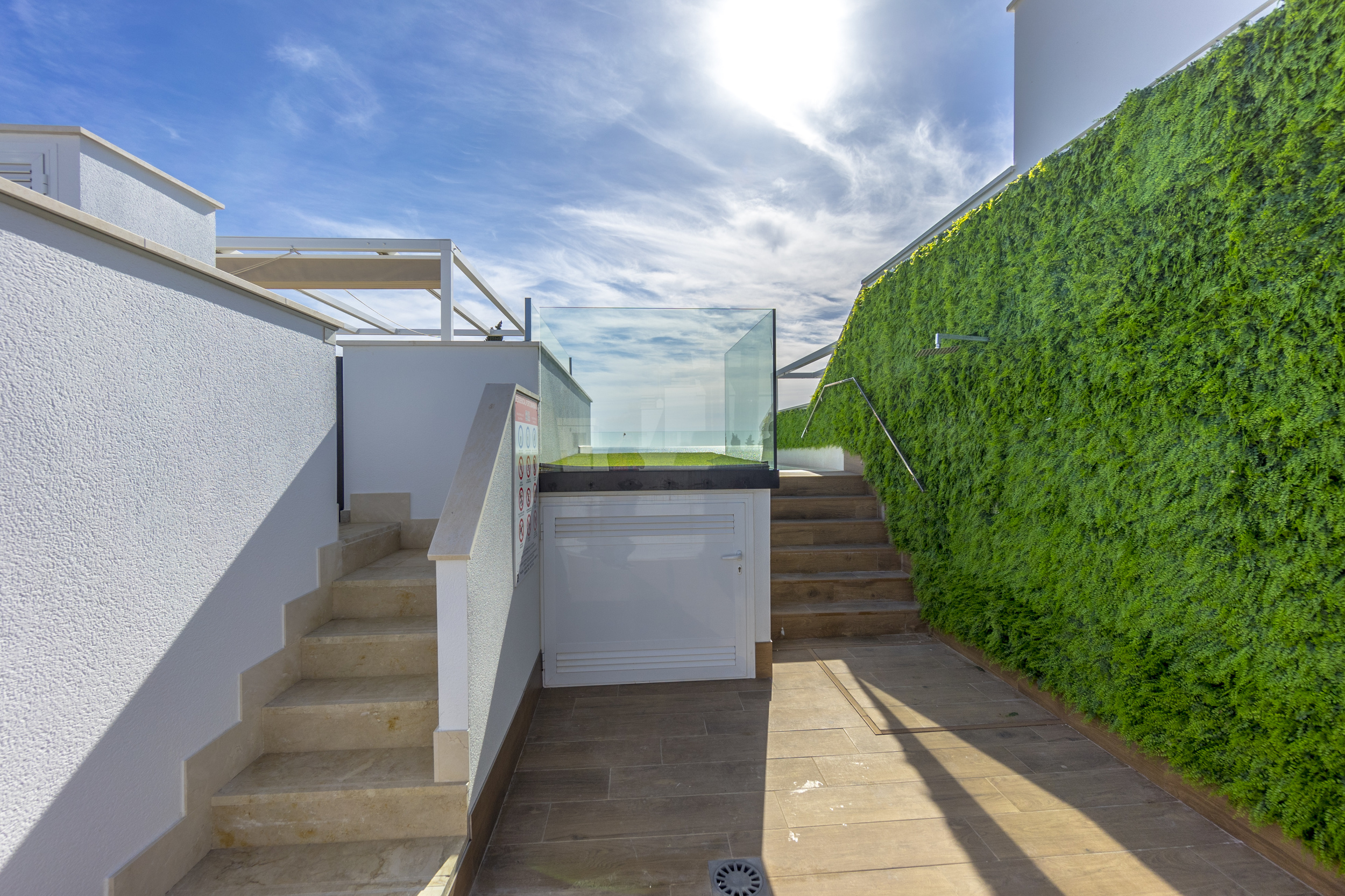Klimatisierter Komfort, kostenloses WLAN, ein privater Parkplatz und eine großzügige Terrasse mit Meerblick – unsere Unterkunft bietet alle Annehmlichkeiten, die Ihren Aufenthalt unvergesslich machen.